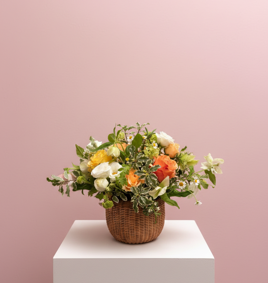 A charming garden-style basket filled with fresh seasonal blooms in soft spring tones. Basket Case #1 is bright, full, and naturally arranged, perfect for sending cheerful wishes or brightening someone’s day.
